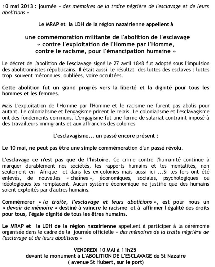 Accueil > Histoire > traite-esclavage > 10 mai : mémoire de la traite négrière, de l’esclavage et de leurs abolitions