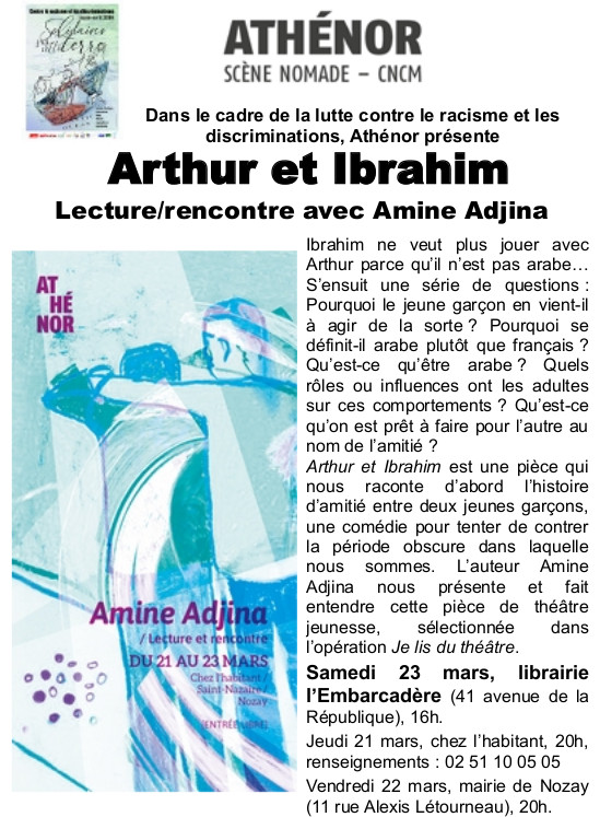 Dans le cadre de la lutte contre le racisme et les discriminations Athénor présente "Arthur et Ibrahim", une lecture/rencontre avec Amine Adjina.