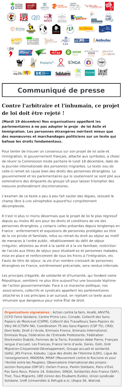 Accueil > Migrations > Documents > Contre l’arbitraire et l’inhumain, contre ce projet de loi !