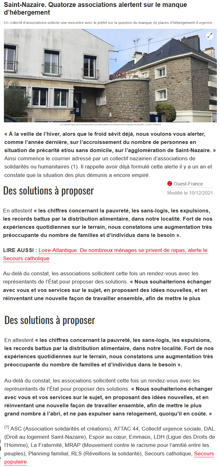 Quatorze associations de Saint-Nazaire se mobilisent et proposent de rencontrer le