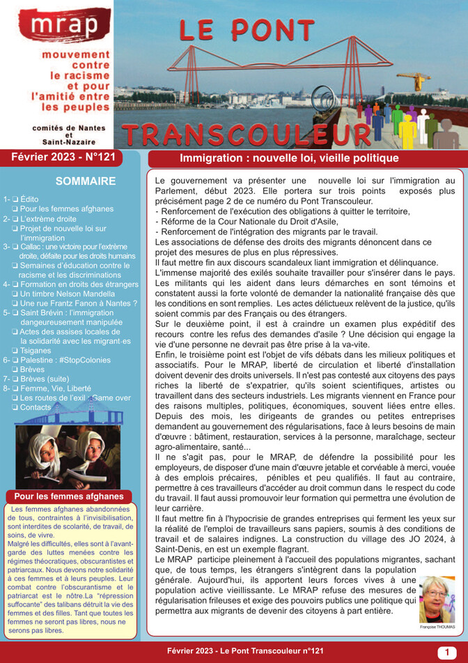 Accueil > le MRAP > le Pont Transcouleur > Le Pont Transcouleur n° 121, février 2023