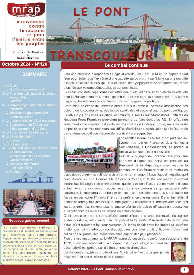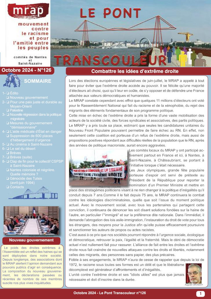 Accueil > le MRAP > le Pont Transcouleur > Le Pont Transcouleur n° 126, octobre 2024