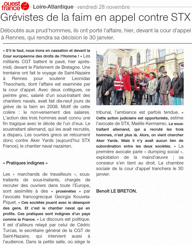 Léo, gréviste de la faim contre STX devant la cour d’appel de Rennes qui rendra sa décision le 30 janvier.