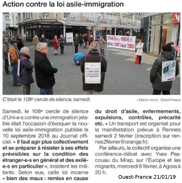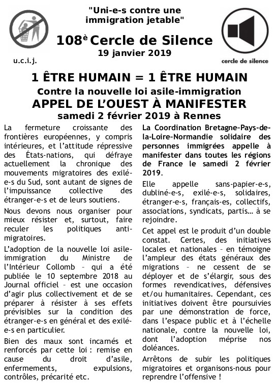[UCIJ] 108ème cercle de silence : 1 être humain = 1 être humain