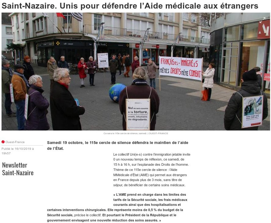 [UCIJ] 115ème cercle de silence : L’Aide Médicale d’État en grand danger !