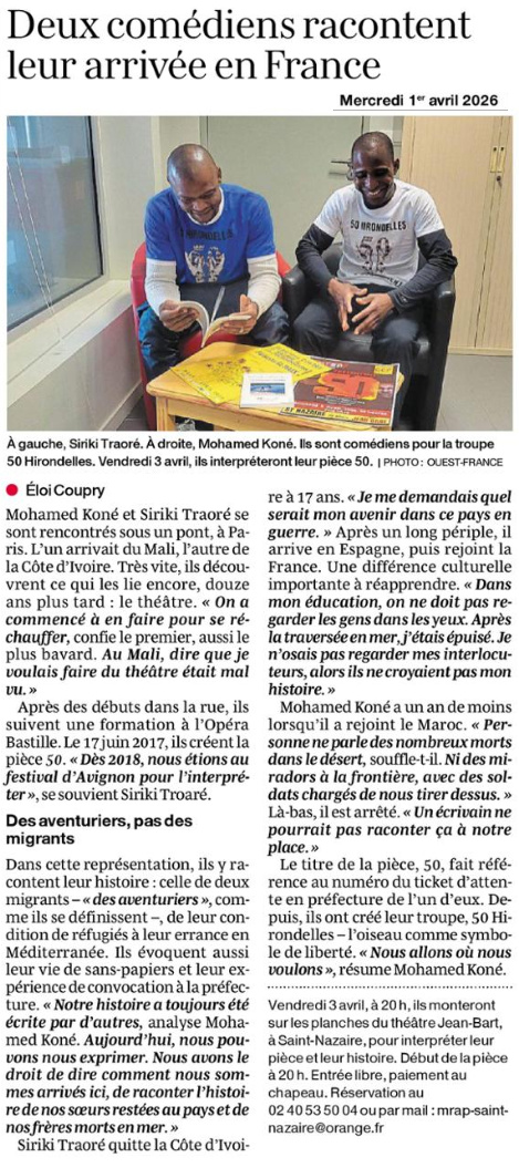Pendant près d’une heure, Mohamed Koné et Siriki Traoré jouent leur pièce 50, sans vraiment jouer. C’est avec humour et émotion qu’ils incarnent leur histoire.